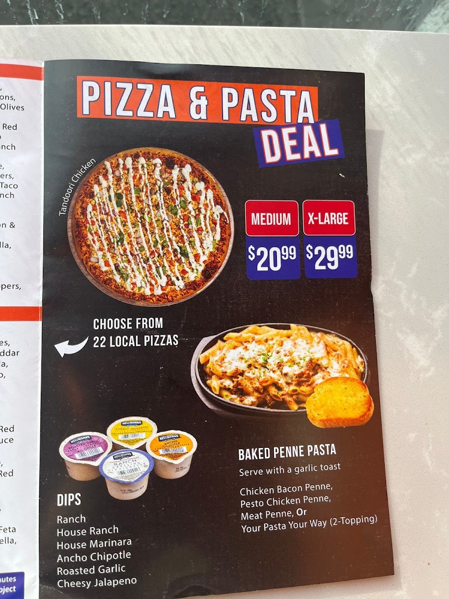 1 Extra-Large (16") Local Pizza, 1 Pasta & 1 Dip